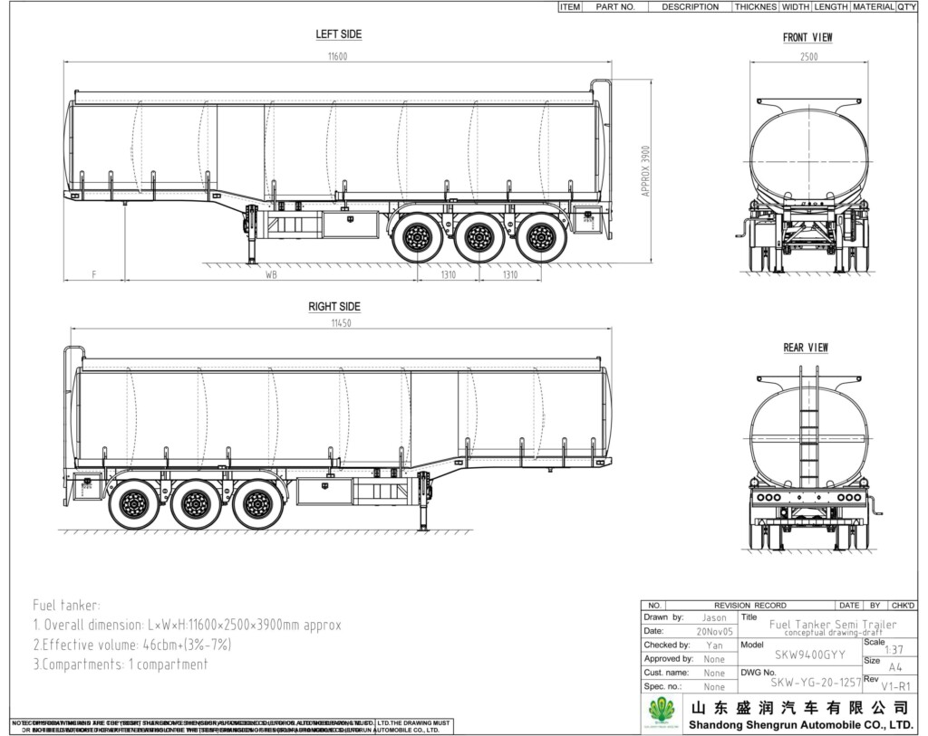 Shengrun tanker trailer fuel tanker trailer, adopt advanced design concept. Our fuel tanker trailer choose Q345B carbon high-tensile steel material, welded by automatic Submerged-Arc processes. We adopt world famous brand of parts, like JOST, WABCO braking valve etc.