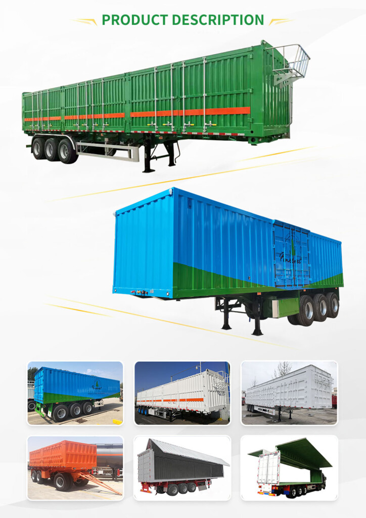 Shengrun van semi trailer series of products for home appliances, textile goods, grain, coal and others. The inside of the box plus insulation, but also can be designed as incubator, coupled with food-grade coating can also be used to transport food or food. Car top blockade, push-pull open, open, open with tarpaulin pole and so on.