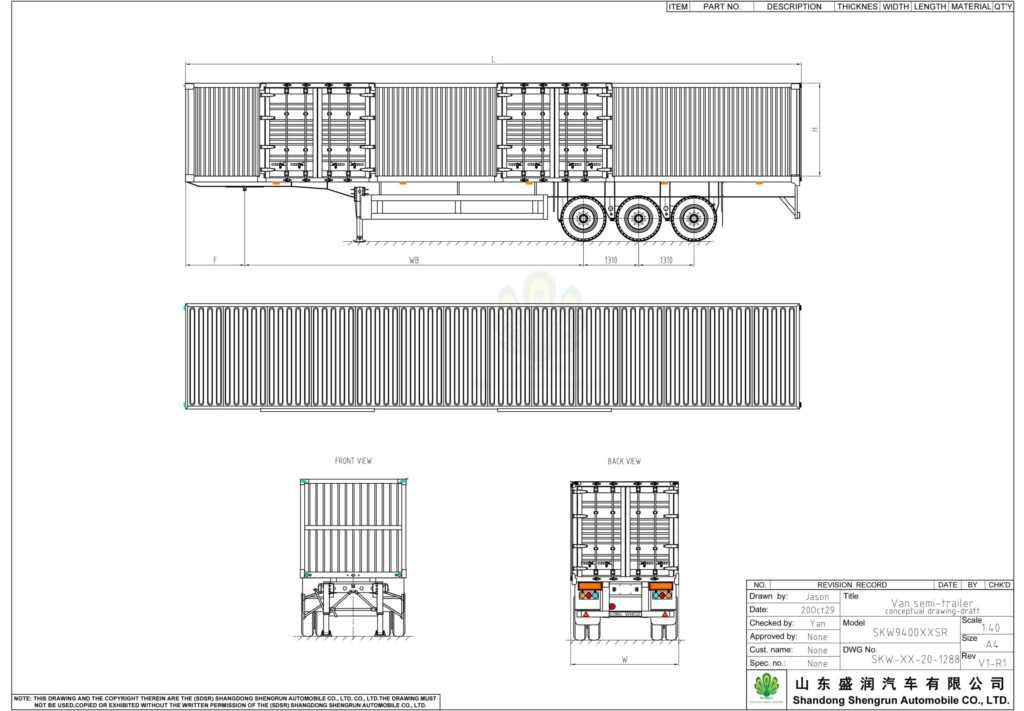 | Specification For Van or Box semi trailer | |