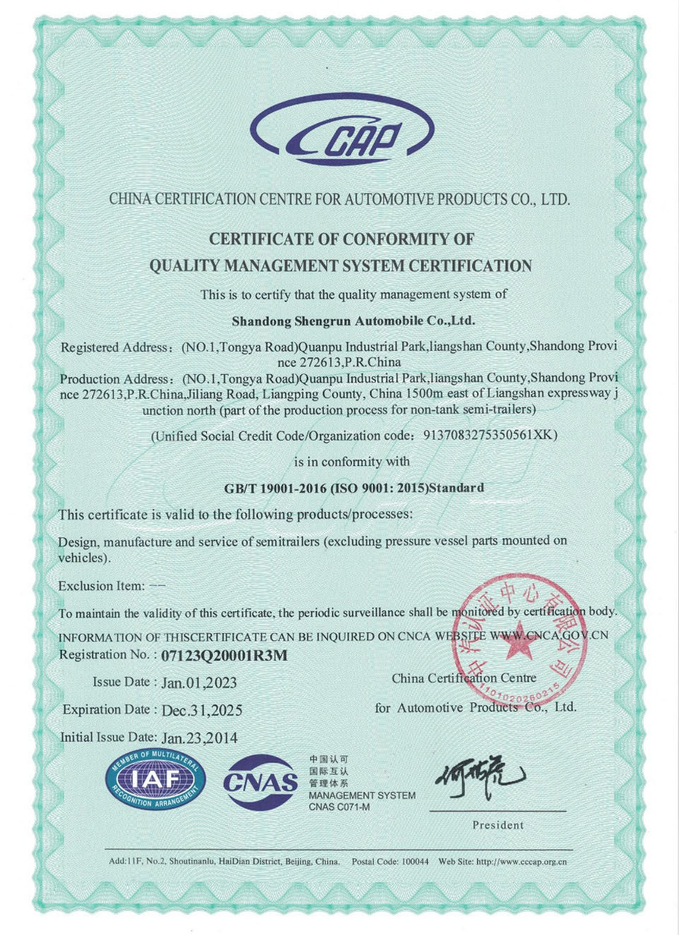 The leading products of Shengrun are: LNG cryogenic liquid transport semi-trailer, LPG liquefied gas transport semi-trailer, flammable liquid tank transport semi-trailer, aluminum alloy flammable liquid tank transport semi-trailer, aluminum alloy oil semi-trailer, tank type Containers, powder materials transport semi-trailers, ordinary semi-trailer transport vehicles, etc. Shengrun has an annual production capacity of more than 20,000 vehicles. At present, more than 100 product models have been announced by the Ministry of Industry and Information Technology, which meets national standards and has reached the international leading level.